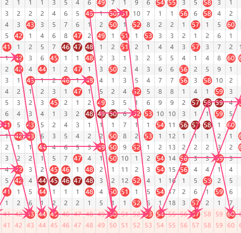三区分析:【41-60】(走势图标注号码非小黄车大底,请谨慎参考,具体思路