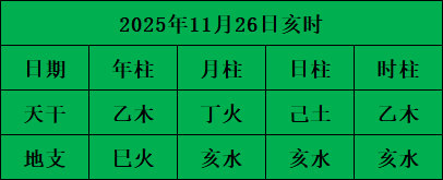 今日是2025年11月26日=己亥日,出生在甲寅日的朋友在今日是天地鸳鸯合,财运、情缘运很不错!