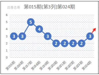 上期3个号,连续推测正确。本期趋势看圆底形态,现在方向继续往上推进,故推测4个号。