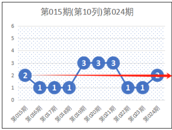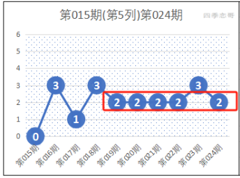 近十期走出了4-3-2-3-4-1-3-0-2-2走势