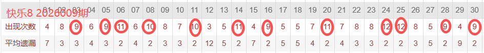 快乐8热号选择标准参考图(以30期为基准)所圈即为部分热码示意图