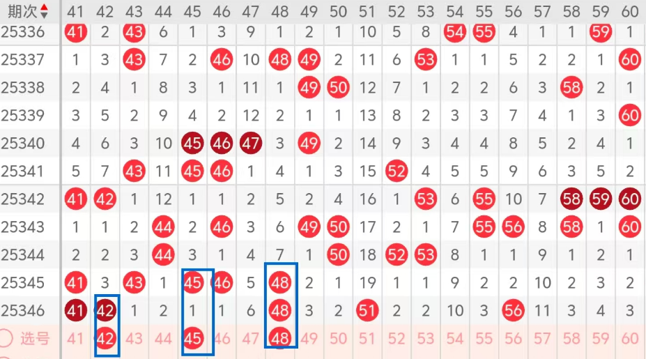 第三区间的走势分析:第三区间上期开出了五个号码球,主要的落号点位在三区间的前半区,走出了两奇三偶的形态走势,上期三区间的前半区落下了三个号码球,后半区落下了两个号码球,整个三区间处于暖的趋势,根据三区间的走势规律,今天的三区间我们主看前半区号码的落位,后半区空区段位置今天只做防守,落下的号码球不多,主看42 45 48这三个号码球的落位,落下1一2码的机会很大,这三个号码球重点关注42 48的组合,都走出了重码的走势形态,建议大家打个三码复二比较稳妥,参考为主!