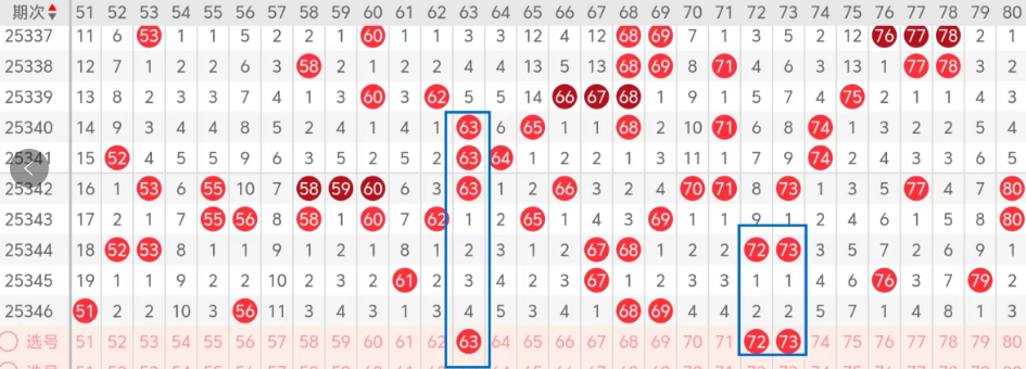 第四区间的走势分析:第四区间上期开出了两个号码球,主要的落号点位在四区间的中间,走出了一奇一偶的形态走势,上期四区间的前半区落下了两个号码球,后半区没有号码球落下,整个四区间处于走冷的趋势,根据四区间的走势规律,今天的四区间我们主看前后半区龙头位置的冷码回补,前半区主看63这个号码球的回补,再看后半区72 73姊妹对号码球的落位,落下一码的机会很大,也是冷码的回补,重点关注63 73的组合!这三个号码球建议大家打个三码复二比较稳妥,参考为主!
