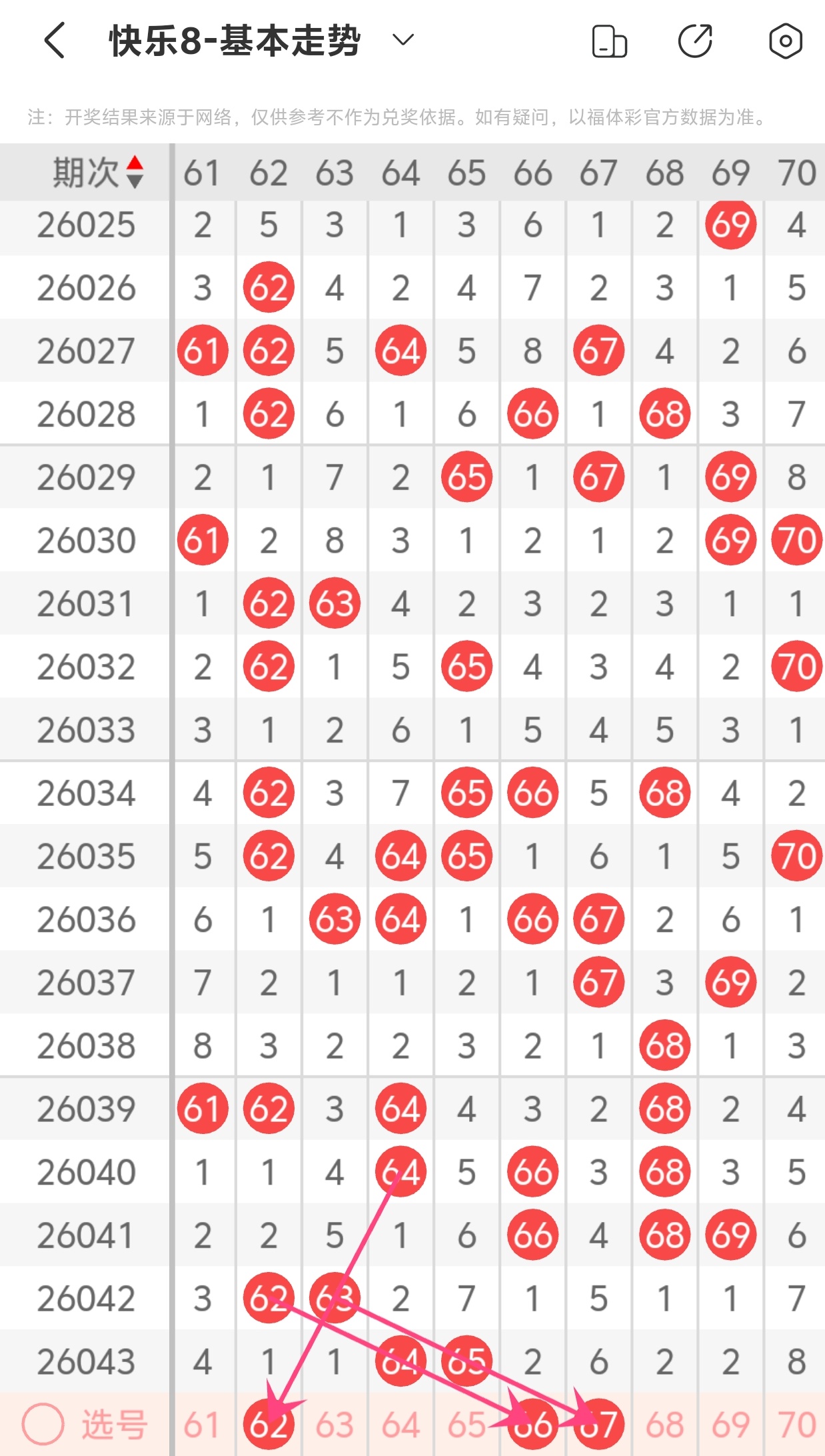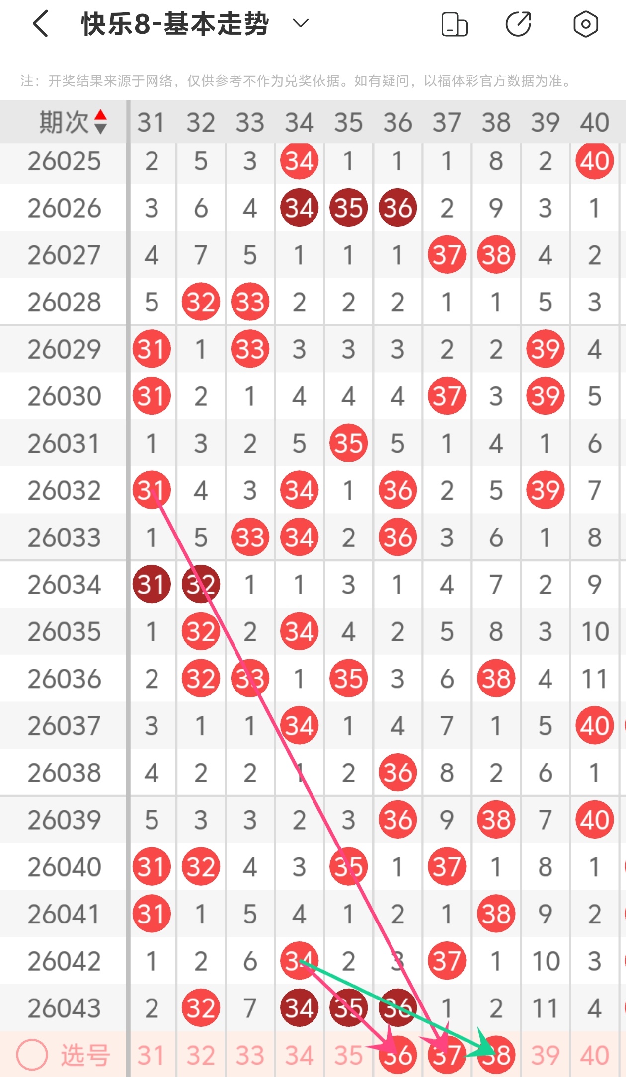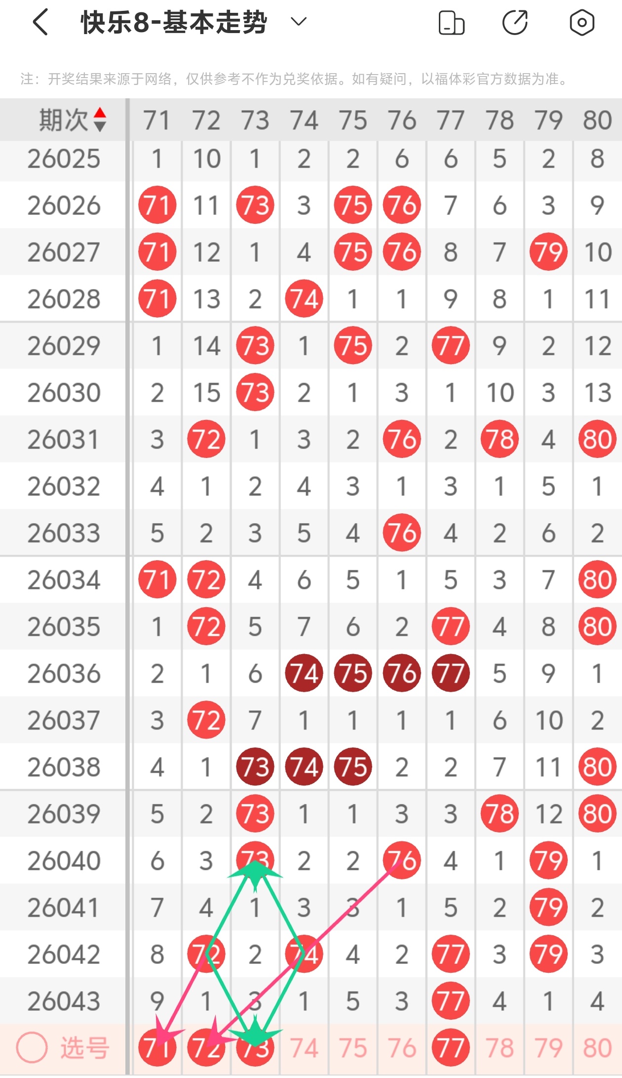 大伙都知道,玩彩票得理性,谁也不能打包票百分百中奖,别人的看法能参考,自己的判断也不能丢。但我这次对2026044期福彩快乐8的分析,那可是下足了功夫!