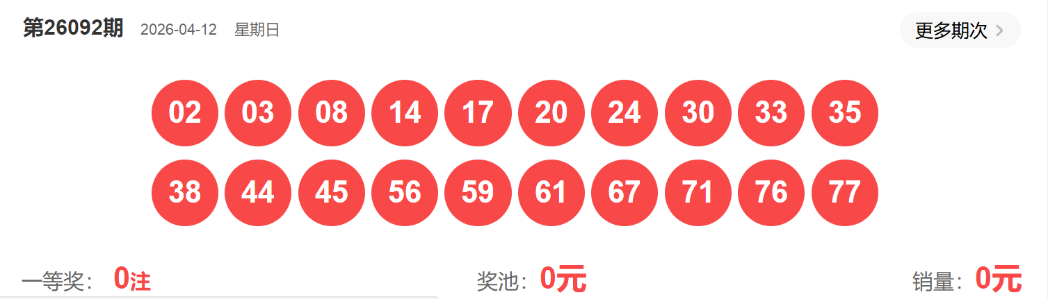 快乐8第093期61-80区域:推荐的第一个号码是64号,大家看到它是一个间隔四对称走势,中间是两重。然后就是66号,大家看到上面两个66,然后给了两个65,旁边是两个67,再回过来给一个66,形成一个太极式的走势。然后就是69号,大家可以看到65给出67,再给出69的间隔一走势,而69本身又是一个间隔2,间隔4,然后间隔2的对称走势。下列就是75号。从71到75,还有76之间的间隔4对称走势。然后76、77同时开出会下一期给出75的走势。最后就是80这个号码间隔3的对称走势。
