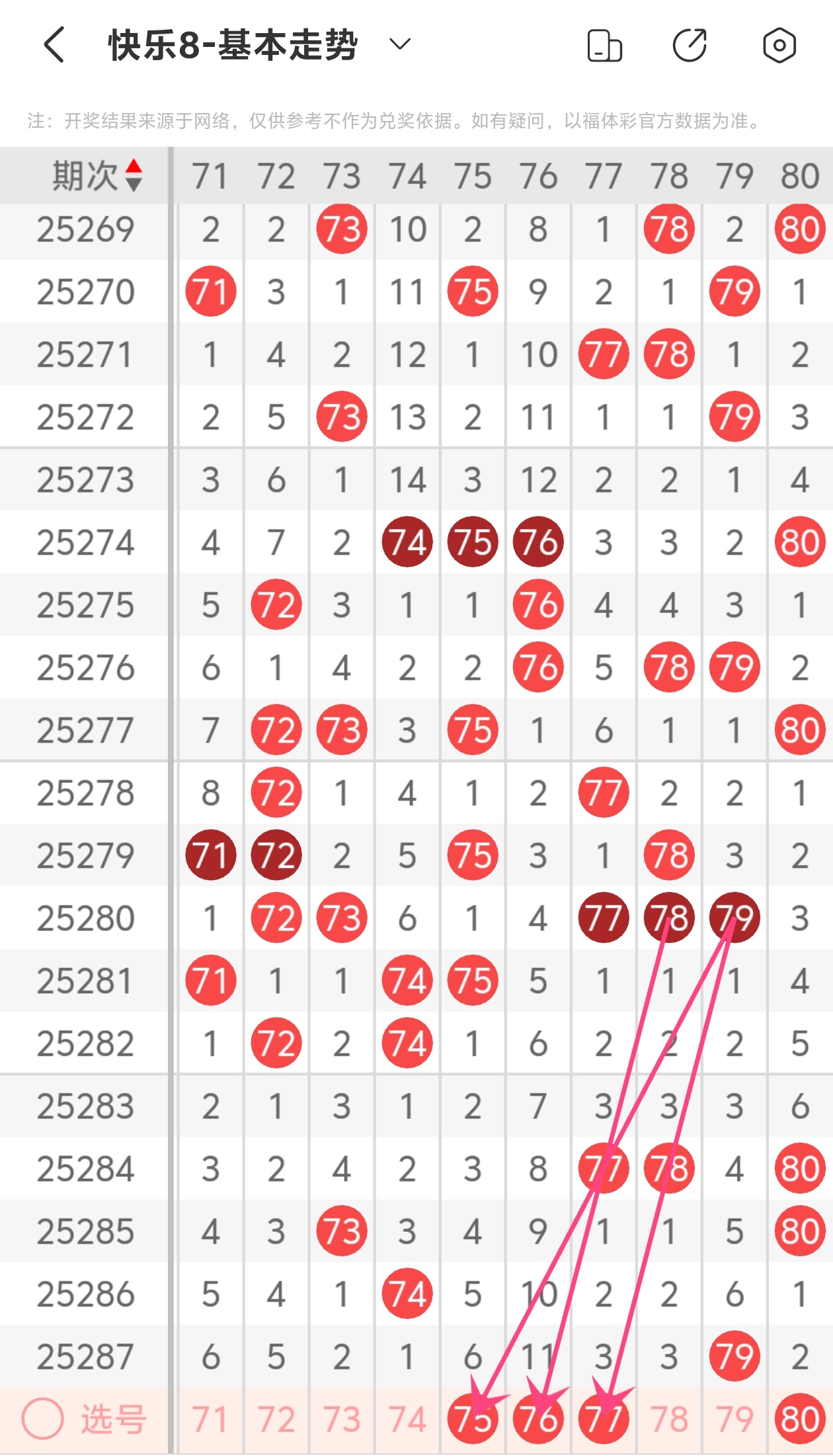 大伙都知道,玩彩票得理性,谁也不能打包票百分百中奖,别人的看法能参考,自己的判断也不能丢。但我这次对2025288期福彩快乐8的分析,那可是下足了功夫!