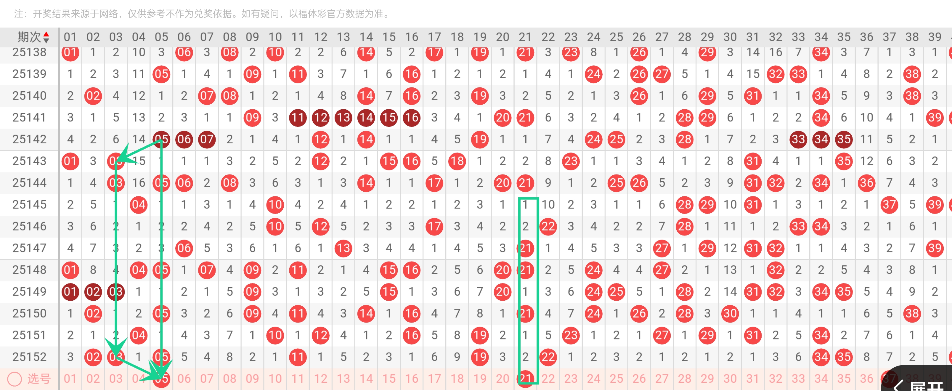 - 奇偶比控制:历史开奖奇偶比均值≈11:9,21位于20-30奇偶转换区(奇号21 vs 偶号20/22),近50期该区位出号时奇偶平衡率提升12%。