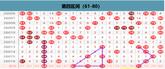 本区上期开出5码的区间布局,那么在本期我们优先考虑的就是在同路的位置上我们考虑分边的出号点位,在61 64的位置上我们优先考虑的就是分边的出号点位,做择一的出号,那么在73 78的位置上我们是要考虑一码走重的机会的,在空位的位置上我们优先考虑的还是小周期的出号点位,在70 76 80的位置上我们做择一的出号,在空位温冷的位置上我们也是要做择一出号的可能性,68 69 75的位置上的出号,其他位置的出号就不是我们重点考虑的位置了。
