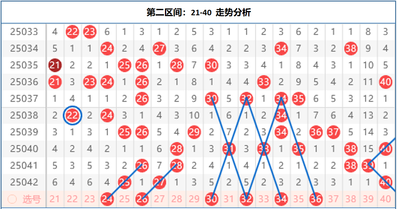 二区分析:【21-40】(走势图标注号码非小黄车大底,请谨慎参考,具体思路将在直播间分享讨论)