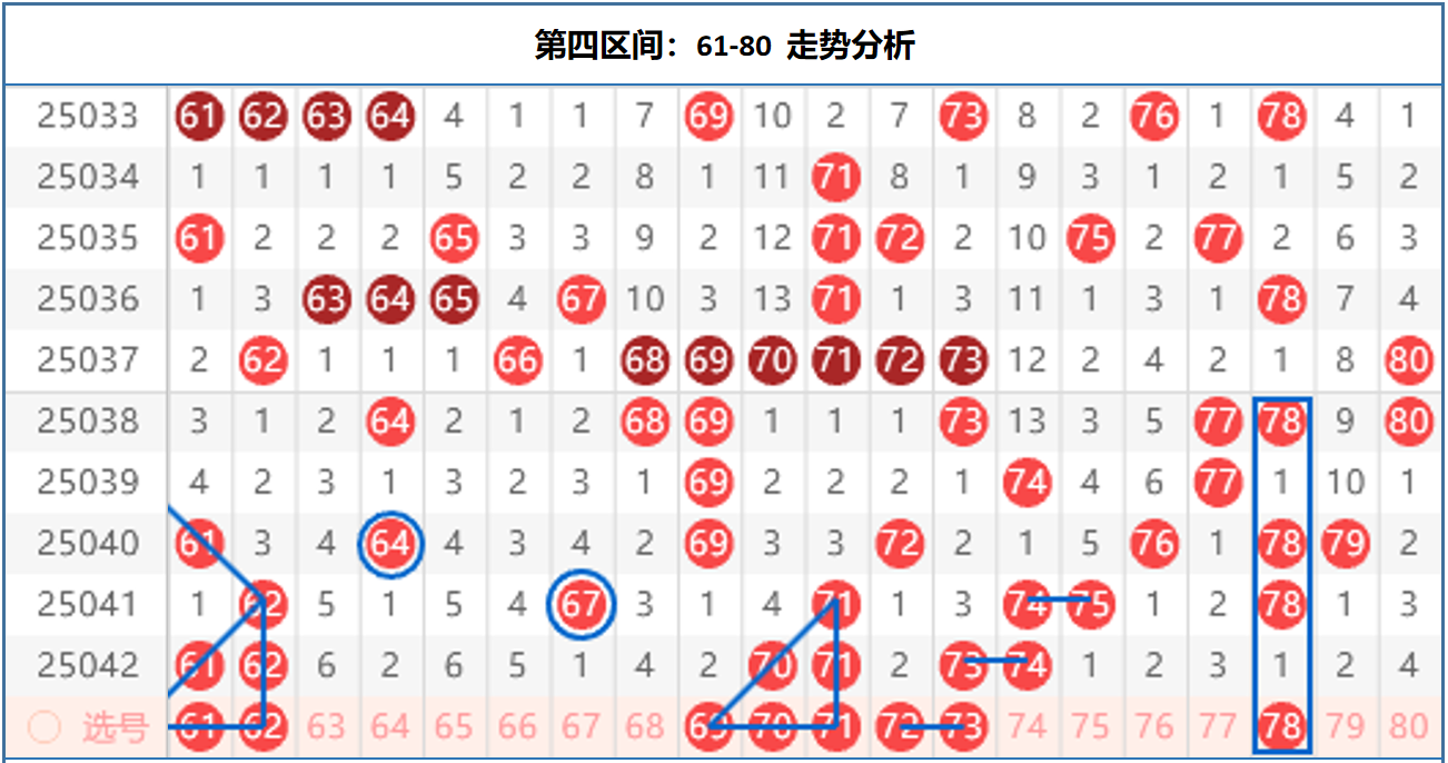 四区分析:【61-80】(走势图标注号码非小黄车大底,请谨慎参考,具体思路将在直播间分享讨论)