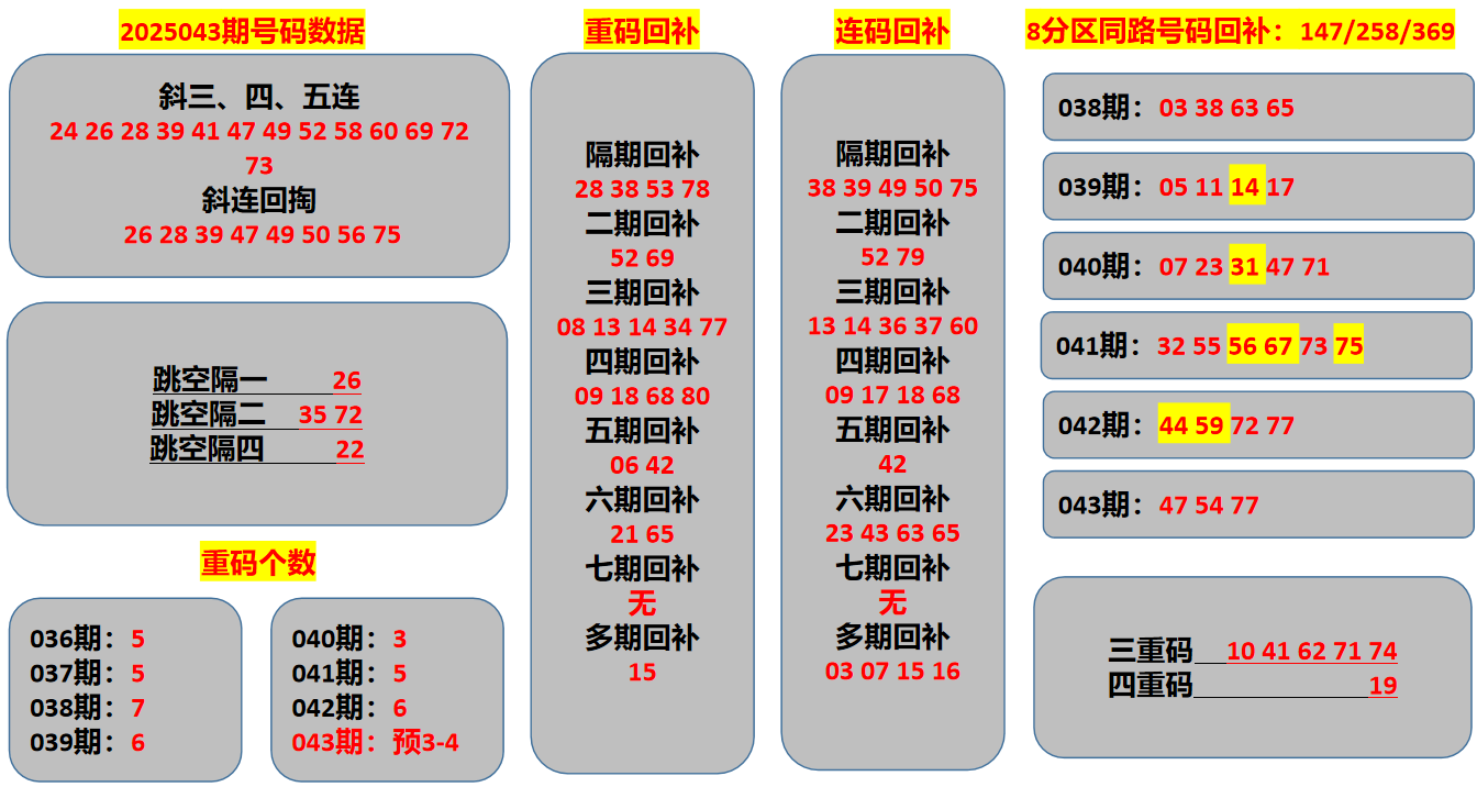 上期三区再次走热,整区间也是强势回补7码的开号,从7码中判断出号的位置和形态上,空位连号也是再次不放空回补开出分边号码,形态重点上以终结的变直连形态出现,区间在走势上明显走弱,判断上本期在形态的布局中还是要侧重于终结形态号码上的选择,其中以48 51 57的同形态分边做重点的变直连终结接力号码的选择,同时对应上还是要关注在47 49 50 56四码中的出现机会,从同区间出现的同形态分边中考虑重点,出号的位置上也是要关注于同形态的放空。而在区间的空位中本期依然是要保持空位形态上的出现机会,号码中46 53 54 55四码中可判断重点,择一的选择回补位置,小周期唯一一码的53注意防守,重点以温冷周期上的三码考虑侧重择一的选择组合布局。