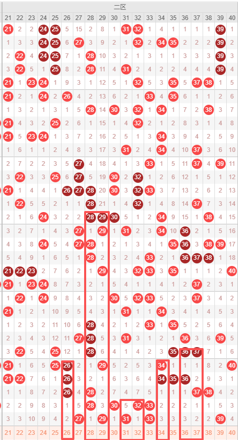 二区:最近二区10期出号情况为:6 3 3 5 6 6 6 4 4 5,总出号情况为48个,平均出号4.8个,本期二区号码推荐:26 28 29 31 32 34 36 37。重点关注:26 28 29 32。