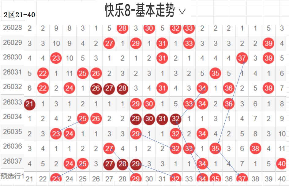 二区(21-40):遗漏5期以下有19,024 25 27 28 29 34  7,数据所示,冷码平均,选择条件增多了.上期开出了7个号码,出码比较分散.这期布防相应增加,重码按比例落这区较少,先给出关联码35,这个区间间接走势,温区,21-30区间上期开了4个,依旧不是重点选号区间,31-40区间开出1个,本期关注热码的回补,间隔小遗漏值最佳,3字头转热,这个小区热码注意回调,可以做关联码的布局,注重温冷码的回补.