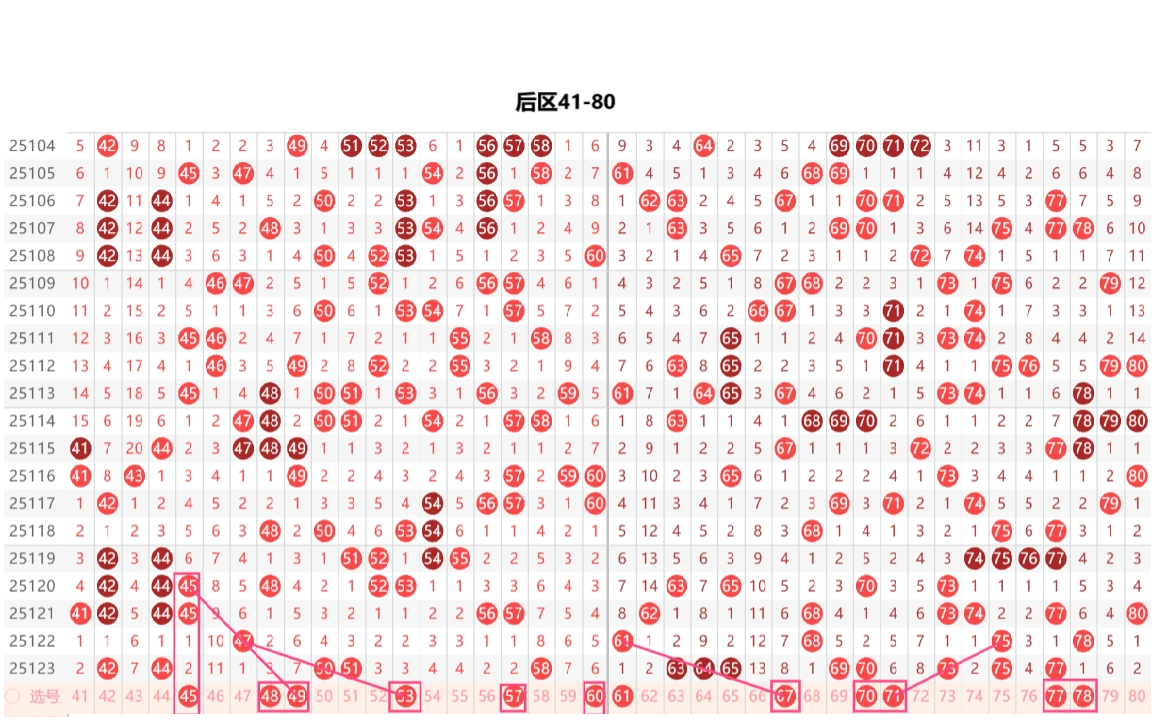 第四小区间,61-80,上期该区间8个号码,本期的走热的几率是比较大的,本期的61 70的组合开出的几率也是比较大的,本期的66 70的组合开出的几率也是比较大的,本期的72 73的姐妹组合和71 73的组合开出的几率也是比较大的这里关注下,这里的63 72的组合本期的开出的几率也是比较大的,本期的64 79的组合开出的几率也是比较大的,本期的65 67的组合和67 69的组合开出的几率也是比较大的,本期的66 71的组合开出的几率也是比较大的本期的72 80的组合开出一组的几率也是比较大的这里比较看好72 80的组合本期的67 68的姐妹组合和79 80的姐妹组合开出一组的几率也是比较大的这里比较看好79 80的姐妹组合的开出本期的75 79的组合开出的几率也是比较大的,本期的61 62 63 64的连号本期的落号的几率也是比较大的