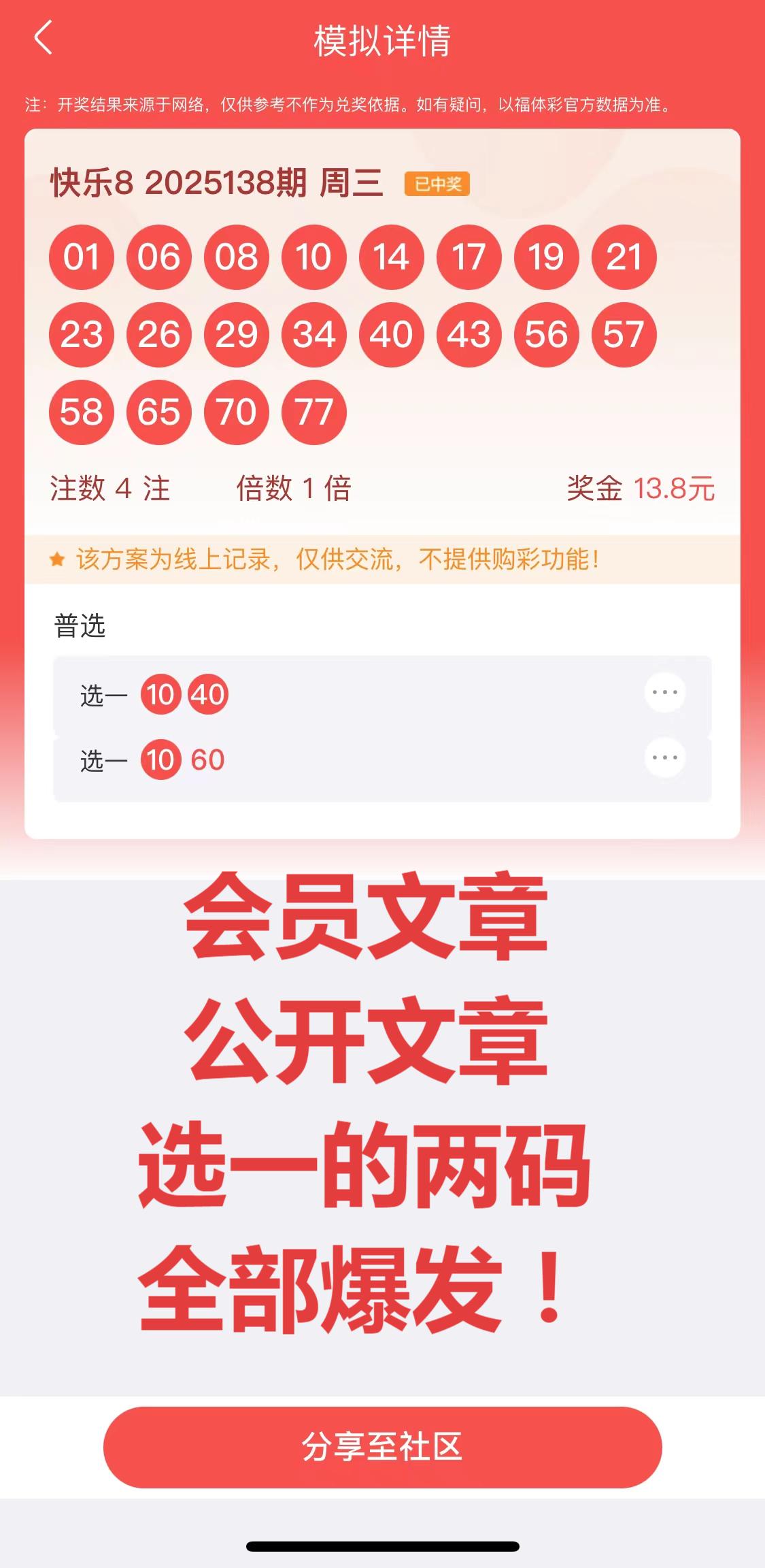 快乐8第25139期:上期四胆全中!8码中6码!15码中8码!