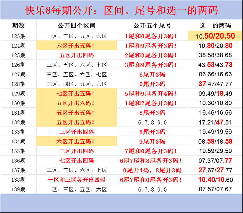方案一:主打的三区和遗漏1的号码,三区开出4码走势,15码中7码!
