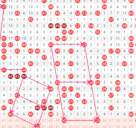 三区分析:【41-60】(走势图标注号码非小黄车大底,请谨慎参考,具体思路