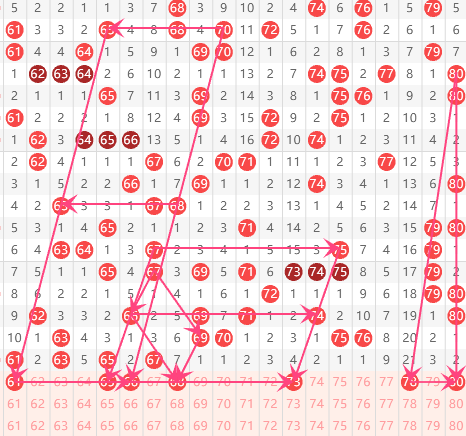 四区分析:【61-80】(走势图标注号码非小黄车大底,请谨慎参考,具体思路将在直播间分享讨论)