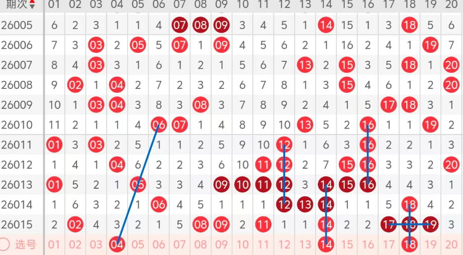 第一区间的走势分析:第一区间上期开出了八个号码球,主要的落号点位在一区间的前后半区,走出了四奇四偶的形态走势,上期一区间的前半区落下了三个号码球,后半区落下了五个号码球,整个一区间处于走热的趋势,根据一区间的走势规律,今天的一区间我们主看前半区04这个号码球斜连码的落位,再看后半区14继续上楼的走势,04 14同尾号码的落位,再看18走出了一个加号的形态走势,这三个号球建议大家打个三胆拖,或者打个三码复二比较稳妥,参考为主!