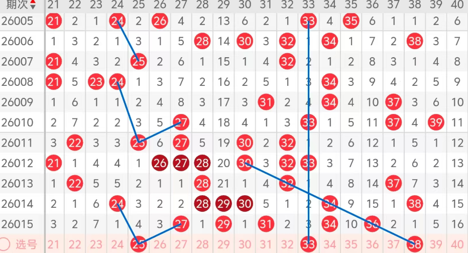 第二区间的走势分析:第二区间上期开出了无个号码球,主要的落号点位在二区间的前后半区,走出了三奇两偶的形态走势,上期二区间的前半区落下了两个号码球,后半区落下了三个号码球,整个二区间处于走热的趋势,根据二区间的走势规律,今天的二区间我们主看前半区25这个号码球的落位,走出了对称的走势形态,再看后半区33这个热码的回补,以及38隔期的回掏,这三个号码球落下2码的机会还是有的,这三个号球建议大家打个三胆拖,或者打个三码复二比较稳妥,参考为主!
