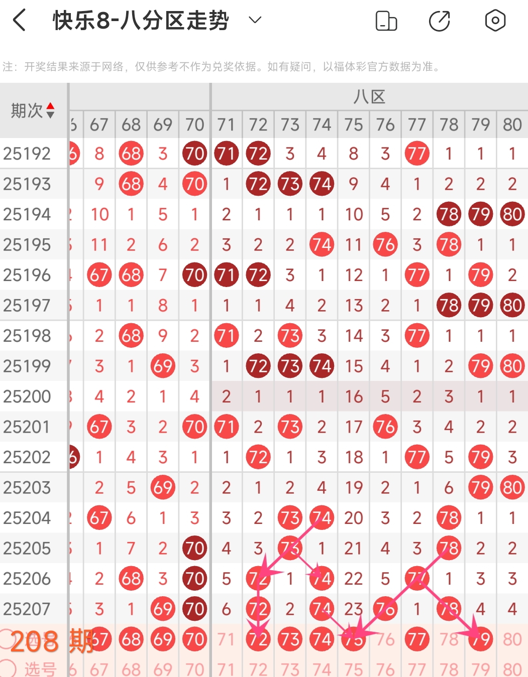上期八区开出72 74 76 78这4 个号码, 本期可以考虑3 个左右