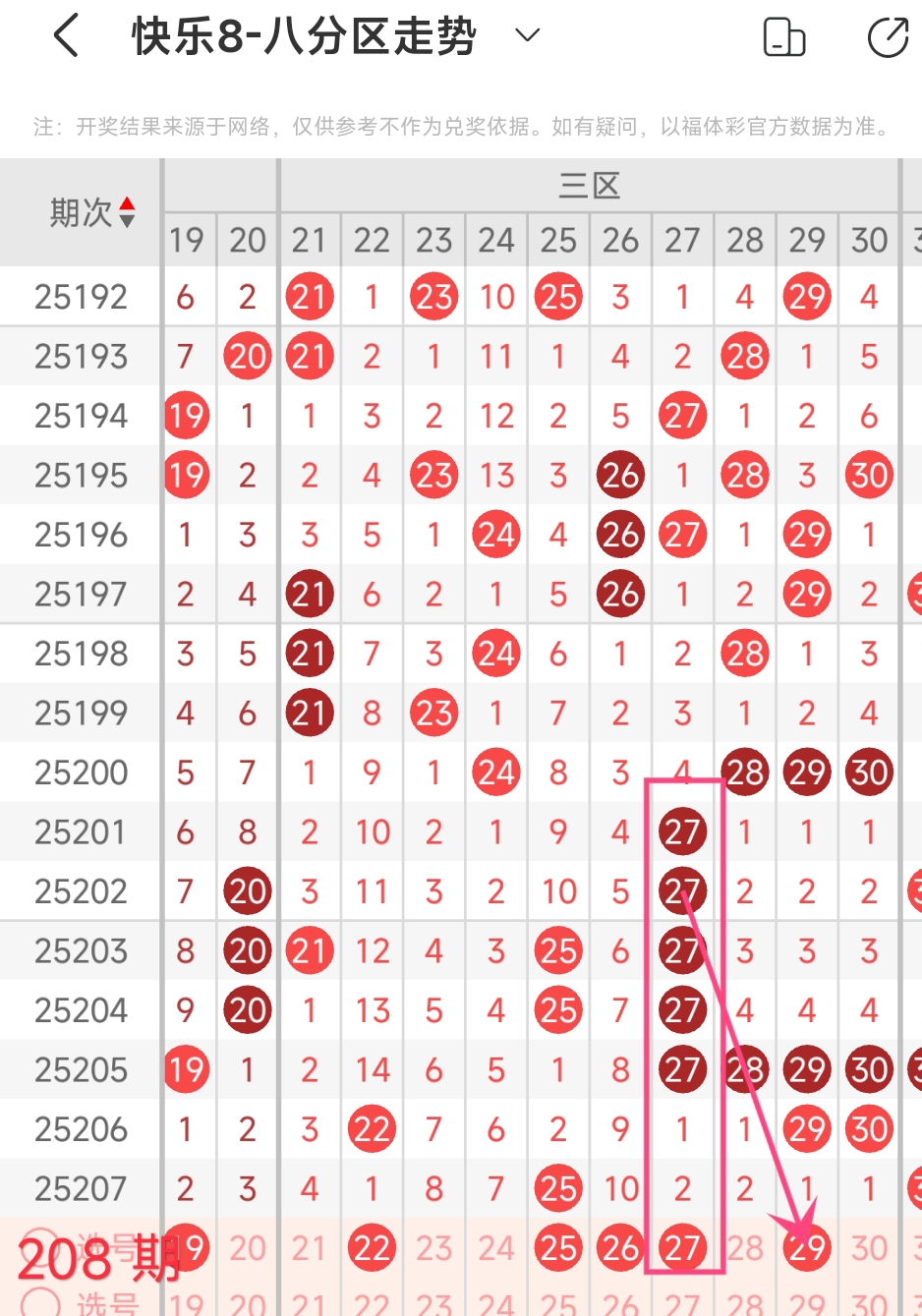 上期三区开出 25 这1个号码,本期考虑2个。
