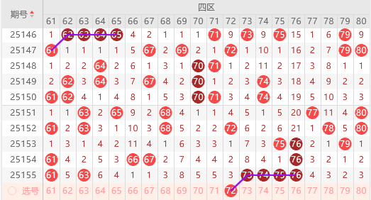 上一期第四区间开出61-63-73-74-75-76六个号码,上一期四区居然开出了四连码,这是我们没有想到的,后端连码的两连还基本能在思路之中,不曾想两组四连之后再次开出跨区间的四连。所以相对本期来说四区走势更是纠缠不清,不管是连码的下拉走势还是分边点位都是首先会影响布局的。这里不妨考虑空位走势的跟进,也许比选择跟随主线布局更好。