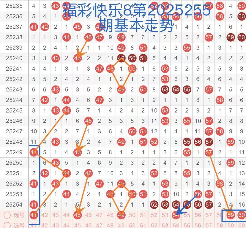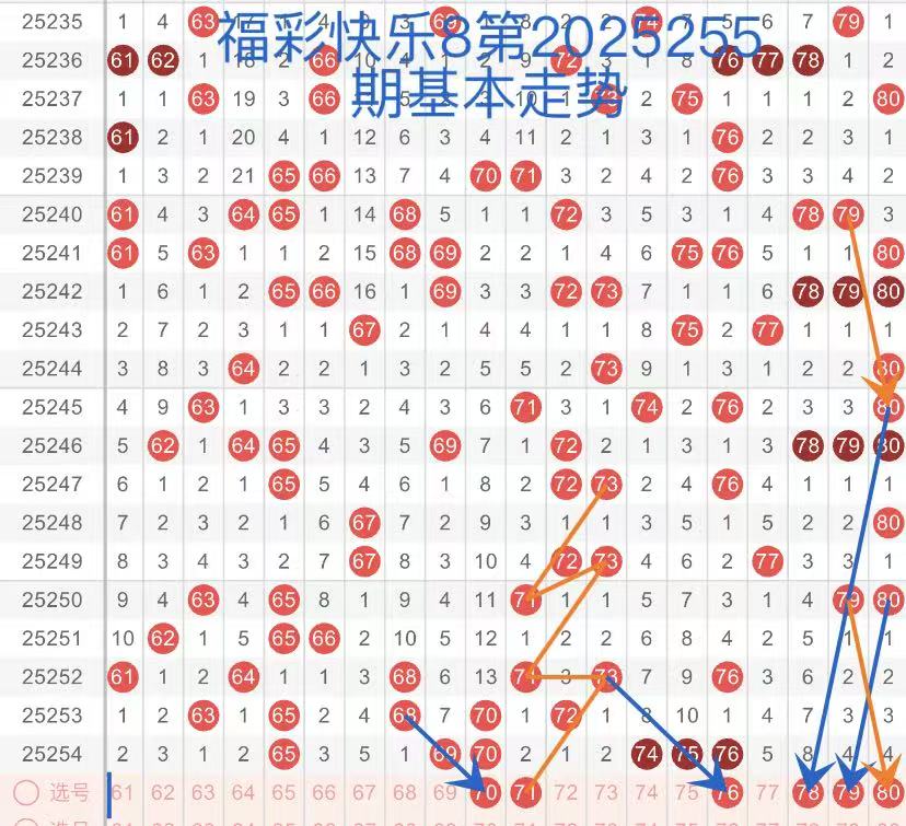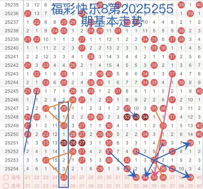25255期福彩快乐8,走势综合分析(本期一胆参考39)