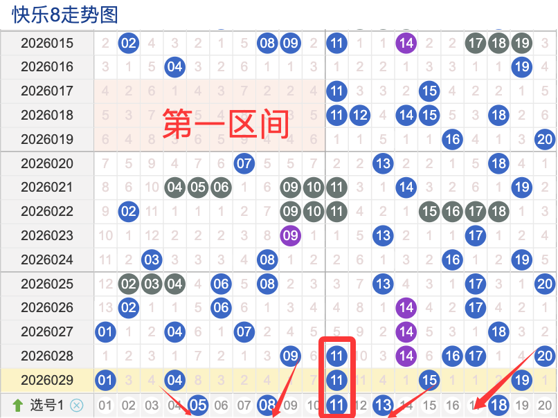 上期一区开5奖号(01.04.11.15.19)上期回顾一区开5个奖号一区间的奖号在上期呈现了递减的趋势,本期先来看号码05具有一定的间歇性,近期比如有时会间隔 3 到5期次出现,整体出现频率还是很稳定,号码08活跃度近期较温热。有一定的间歇性,间隔上来说的话是很稳定的,整体走势有一定的波动性,有明显的冷热趋势变化,出现的频次近期比较温热。号码13活跃度相不是很稳定有明显的连续出现态势,偶尔间隔多期会出现一次整体表现温热