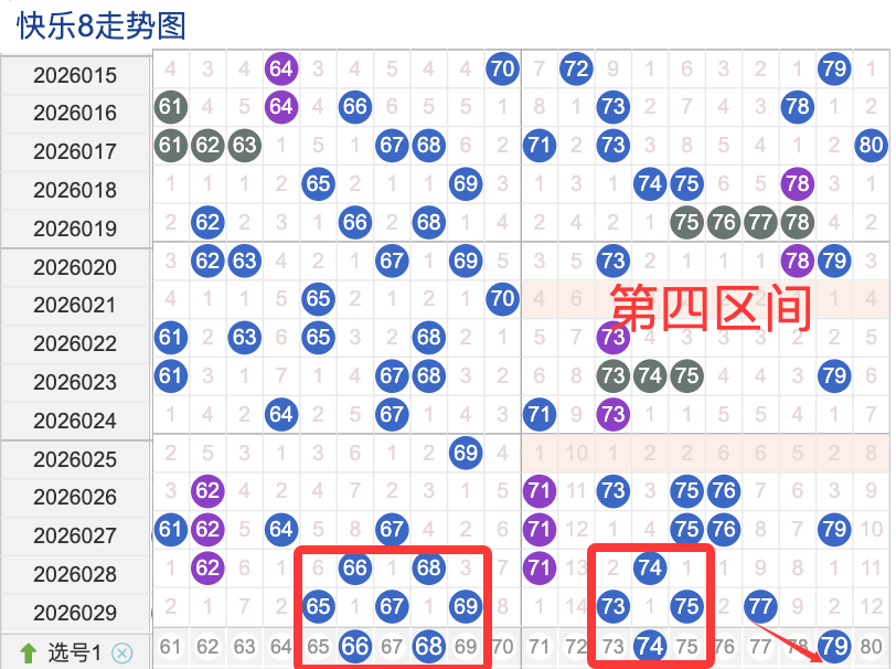 上期四区间开出了6个奖号(65.67.69.73.75.77.)上期的四区开6个奖号呈现了一个递增的趋势,开出的奖号7头回补3个6头回补3个,先来看号码66在近 30 期内属于还是很稳定的号码,近期出现频率相对稳定的,偶尔会间隔多期后出现一次,这个号码要注意防守,号码68具有一定的间歇性活跃度较稳定比如有时会间隔 35期就再次出现,也有时会间隔多期,近期整体出现频率比较,近期还是要关注的.号码74活跃度近期比较,有一定的间歇性。活跃度近期较热,整体走势有一定的波动性.
