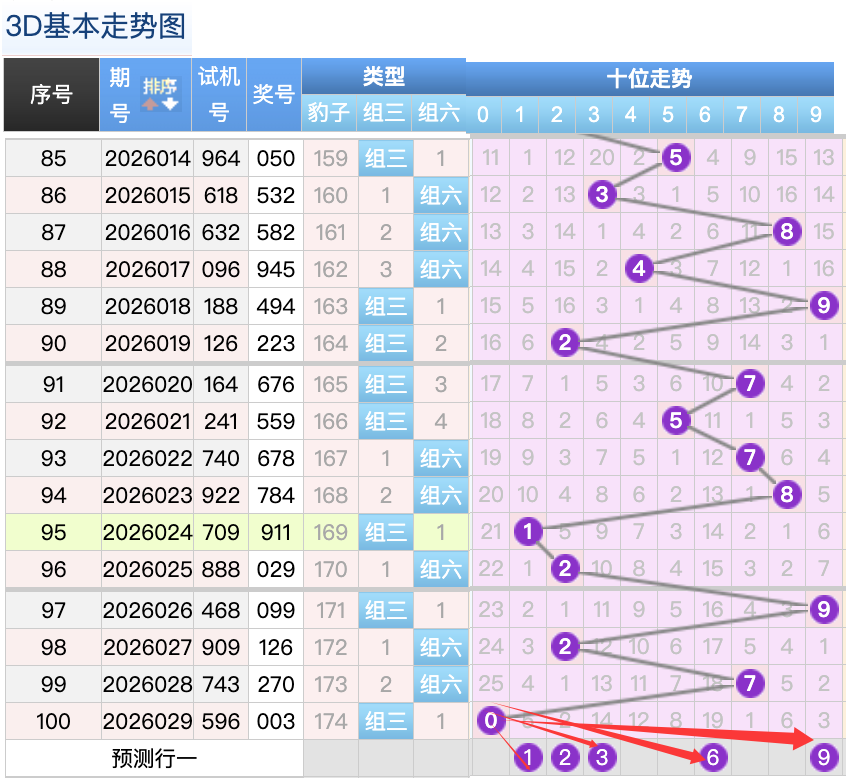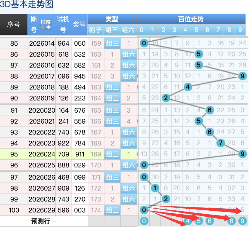 3D上期百位开出的0球,这个奖号是一个小周期码回补落位趋势也是一个比较好的符合百位上的落位点,先来看6号球这里还是有机会继续走出一个5跨冷回补趋势,还有一个就是8号球和9号球这里的两个冷热周期号码的落位形态的概率在这里的机会还是很好的要注意防守,然后0号球这里要注意是一个重码回补落位趋势注意防守8号球在百位上要注意可能有机会走最大冷码的落位注意防守 。