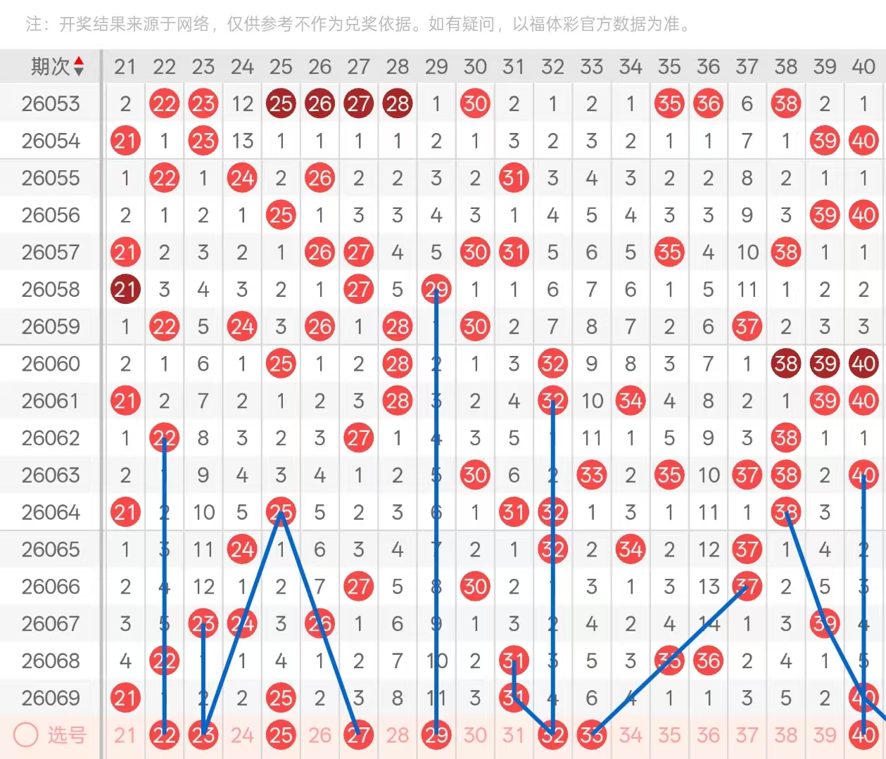 二区:二区间上期开出了4码,二字头头部位置开出了两码4期遗漏下落的二十一二十五,25以孤码形态开出,尾部位置处于放空状态,一码没开出。3字头头部位置开出了3期遗漏下落的31,以孤码形态做重,尾部位置5期遗漏下落的40同样以孤码形态开出,中部位置一码没开出,处于放空状态。本期二字头头部位置可关注2125同开做一码的重号,优先考虑25的孤码座重,其次分边号码考虑26的两期遗漏回补,2324对子考虑23的空2回补即可,头部位置交叉形态的22可作为防守号码下落,尾部位置2730两码3期遗漏号码可考虑30的上下一漏对称开出。三字头头部位置可考虑31的双重分边号码32下落,其次33的六遗漏在本期可做重点防守。中部位置3536对子空1回补,二选一即可,尾部位置37383940优先考虑40的孤码分边号码下落。