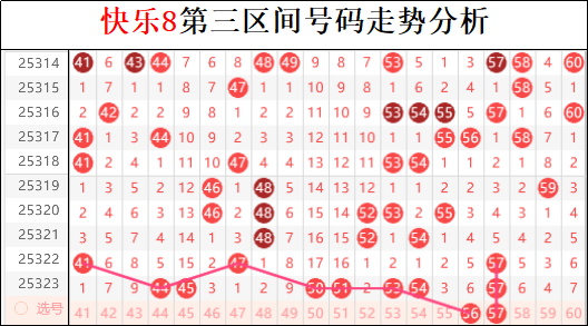 三区上一期最明显的就是冷码全部回归,这一点估计是很多人都没有想到的。冷码回补后,热势迅速转移至连码与重号交替主导,45-47段的小连出人意料地形成突破口。本期三区需重点关注49与51的斜连跟进机会,同时警惕43、44双连反弹回补。鉴于冷码已完成轮动,后续将以“连+跳”形态为主导,48与50可作为关键过渡位重点布防。重号方面,55若再度现身,极可能带动56形成短连爆发。整体走势呈现由中部向两端扩散迹象,尤其注意58-60末端升温节奏加快,有望在本期实现突破。顺势布局,精准卡位。