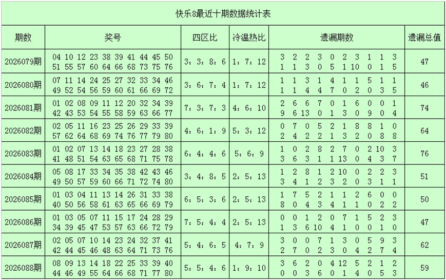一、快乐8第2026089期奖号分析(定义:遗漏0-2期号码为热码,遗漏3-6期号码为温码,遗漏7期及7期以上号码为冷码,重码为上期开出奖号,邻码为上期没有出现,但与上期奖号差值为1的号码,例如上期开出奖号04,没有出现号码03和05,则本期03和05都为邻码,其它则为孤码。