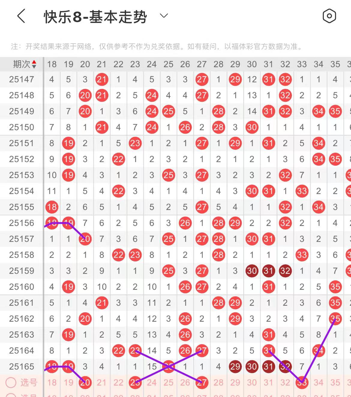 21-30区:本区间上期开出了三个号码,从号码走势图上看,该区连续走热两期,本期注意出号个数回归正常两个号码,在选号上需谨慎。本期有出号走势的号码有23.27号,交叉斜连出号走势。