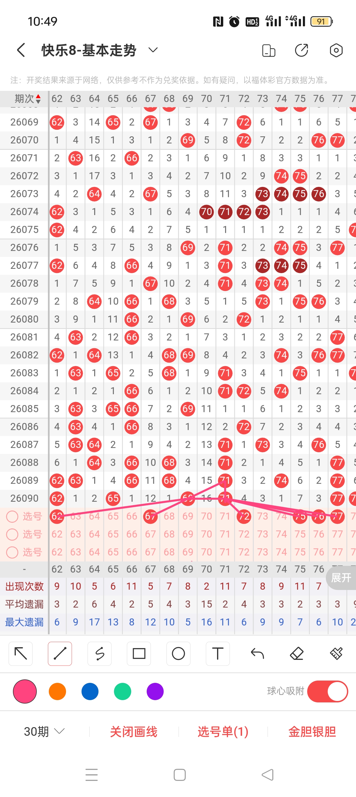 6、分区法:快乐8共分为4个区,一区:1-20,二区:21-40,三区:41-60,四区:61-80。