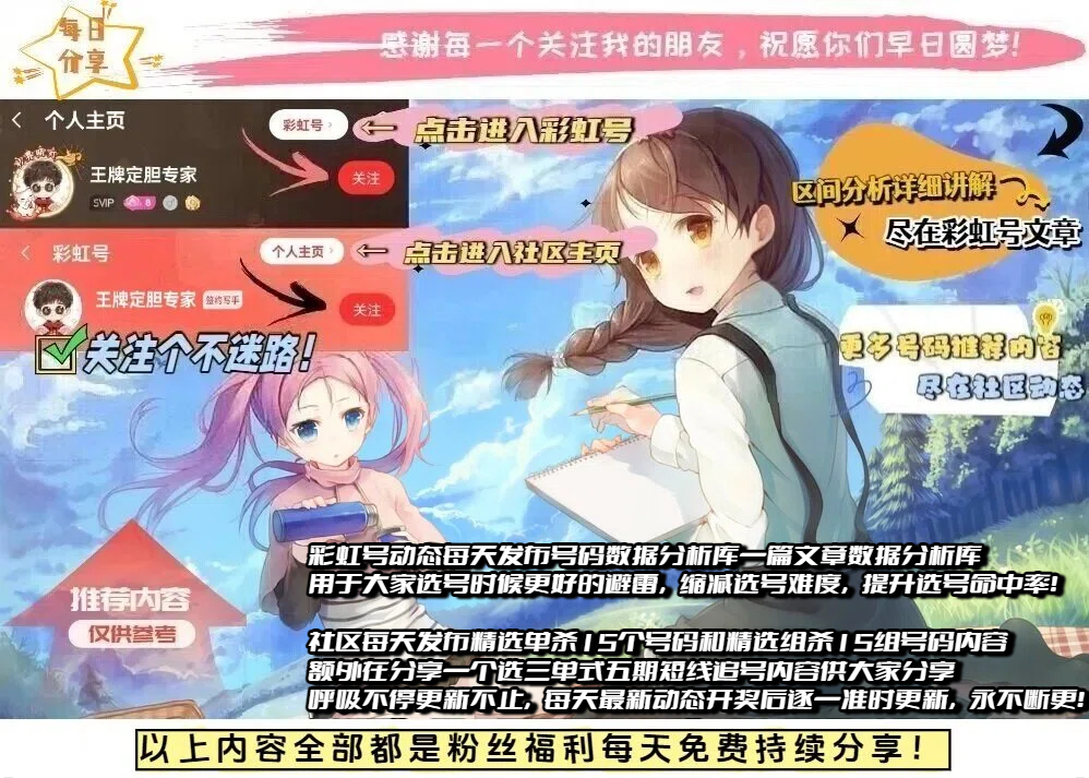 方案用途:上期开出号码跟随的号码就是重点关注号,可从中选择1-2个号码作为胆码。