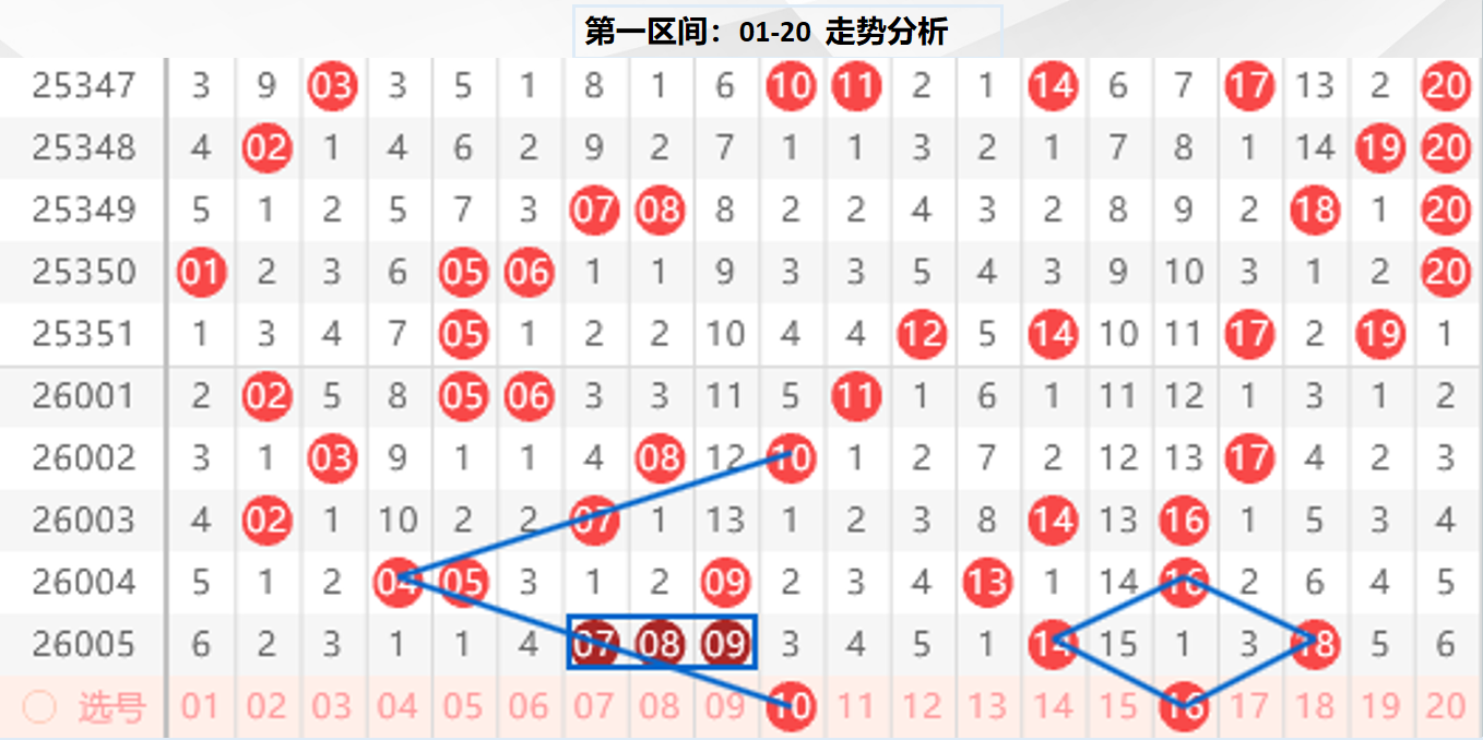 一区分析:【01-20】(走势图标注号码非小黄车大底,请谨慎参考,具体思路将在直播间分享讨论)