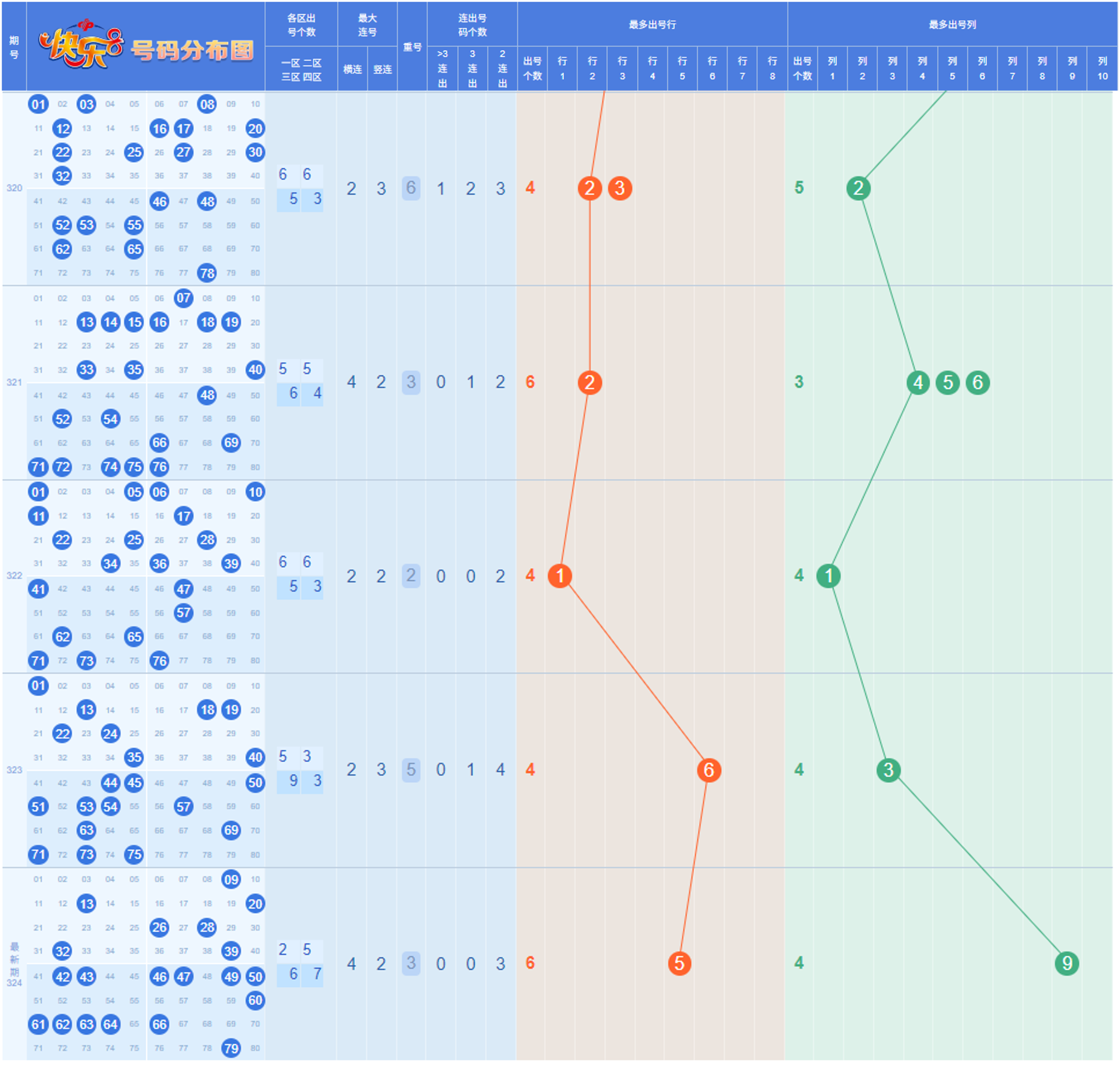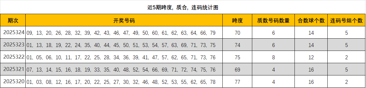 • 近期走势:连码持续高热。上期(324期)开出了罕见的四连码(61-62-63-64)及多组双连码,势头强劲。近5期每期均开出至少2组连码,热度不减。