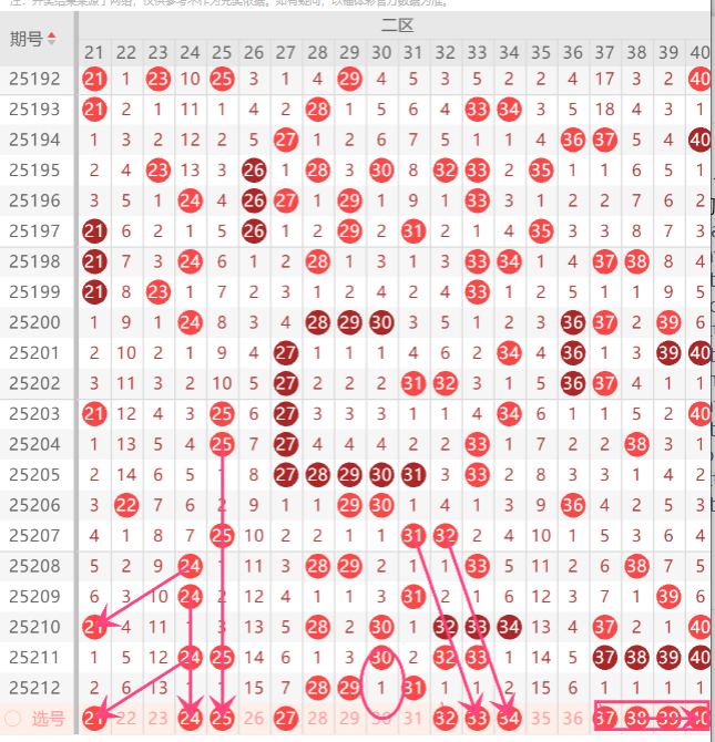二区在近期的走势上分析,整个区间是走热的形态,上期二区间开出了3码,而且整个区间上期开出的形态是隔期回补和对称形态走势,那么本期二区间可以重点在重码回补上,重码回补上注意27.32.33.37.40中开出1-2码回补机会,而本期的梅花形态上注意防守机会,至于空位上注意防守机会,而连号下注意本期回补1-2码开出机会,而遗漏15期的26.号和35号中注意防守布局,三期计划,如图所示.