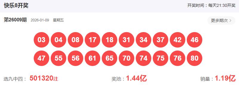 快乐8第2026009期开奖号码: