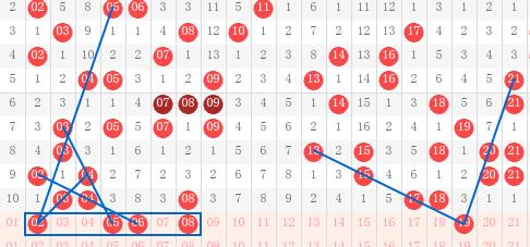 【第一区间01-20】:上期开出5个号码。本期推荐5个号码02-05-06-08-19。本区间0头考虑以同路号02、05、08为主带出06,大家可以看到,02、05具有三斜连强走势,06偶三连,08是同区间同尾重号把握;19奇数四斜连走势明显,并作为上期断9尾大回补。一区间推荐重点号码:02-05-06-19。