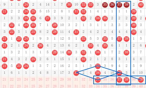 【第二区间21-40】:上期开出3个号码。本期推荐号码:34-37-38-40,从3字头近期出号分析,32、33均有三期重号开出,本期34以三重考虑,同时延续同路号码37、40同出,37-38则以对子形态在此小区间出号。二区间推荐重点号码:37-38-40。