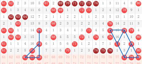 【第四区间61-80】:这个区间上期开出7个号码。本期推荐号码:64-65-66-78-79-80,66遗漏一形态三期重点号码,同时以三直连形态在6头作防守;78以菱形、斜连考虑,78加上80共同组成一组偶数二连号;79作为遗漏一三期,同时以三直连在7头考虑防守。同路、斜连均具,有极强出号趋势,是重点的重点;77-78亦为明码,在76开出三重后的必要防守。四区间推荐重点号码:65-66-78。