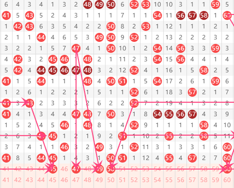 三区分析:【41-60】(走势图标注号码非小黄车大底,请谨慎参考,具体思路