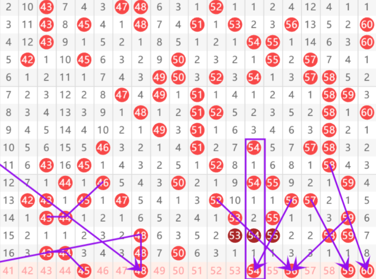 ⭐三区重点号码:45 48 54 56 59 ,防守号码:60