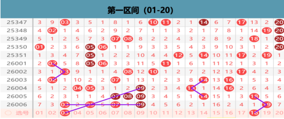 本区上期开出5码的区间布局,那么在本期我们还是先考虑形态的分类,03 05的孤码同形态,09 19的同尾,07 09的同形态,在这个位置上我们优先考虑的就是同尾的出号点位,在09 19的下方我们是要选择一码的出号的可能性的,那么在03 05的位置上的出号我们也是选择一边的出号,作为我们布局的重点位置,那么在空位上,我们优先考虑的还是小周期的出号点位,13 14 16 17的择一出号的可能性,那么其他位置的出号就不是我们考虑的重点方向了。
