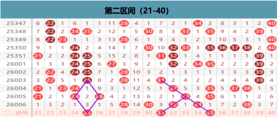 本区上期开出5码的区间布局,那么在本期我们在区间的关注的点位就是考虑28 30 38的位置上我们做出号的考虑重点,那么在28 38的位置上我们可能考虑的就是做一放一的可能性,在空位上我们关注的就是21 24的回补点位,这个位置上我们做择一出号的可能性,优先考虑的就是分边的出号20 22 23 25的出号,那么其他位置上的出号就不是我们考虑的重点位置了。