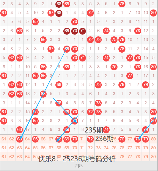 回顾25235期开奖号码:03 08 12 13 16 29 31 38 40 43 44 52 53 57 58 60 63 69 74 79 ,最近一段时间号码爆区几率特别高,目前已经连续多次出现爆区热开的情况,爆区之后基本上都是迅速回调,转换至其他区间继续暴热,大家若是能抓准区间,或许有很大的机会,但是号码的变盘规律是非常的快,很难把握,个人建议谨慎选择,不要 盲目的去操作~~