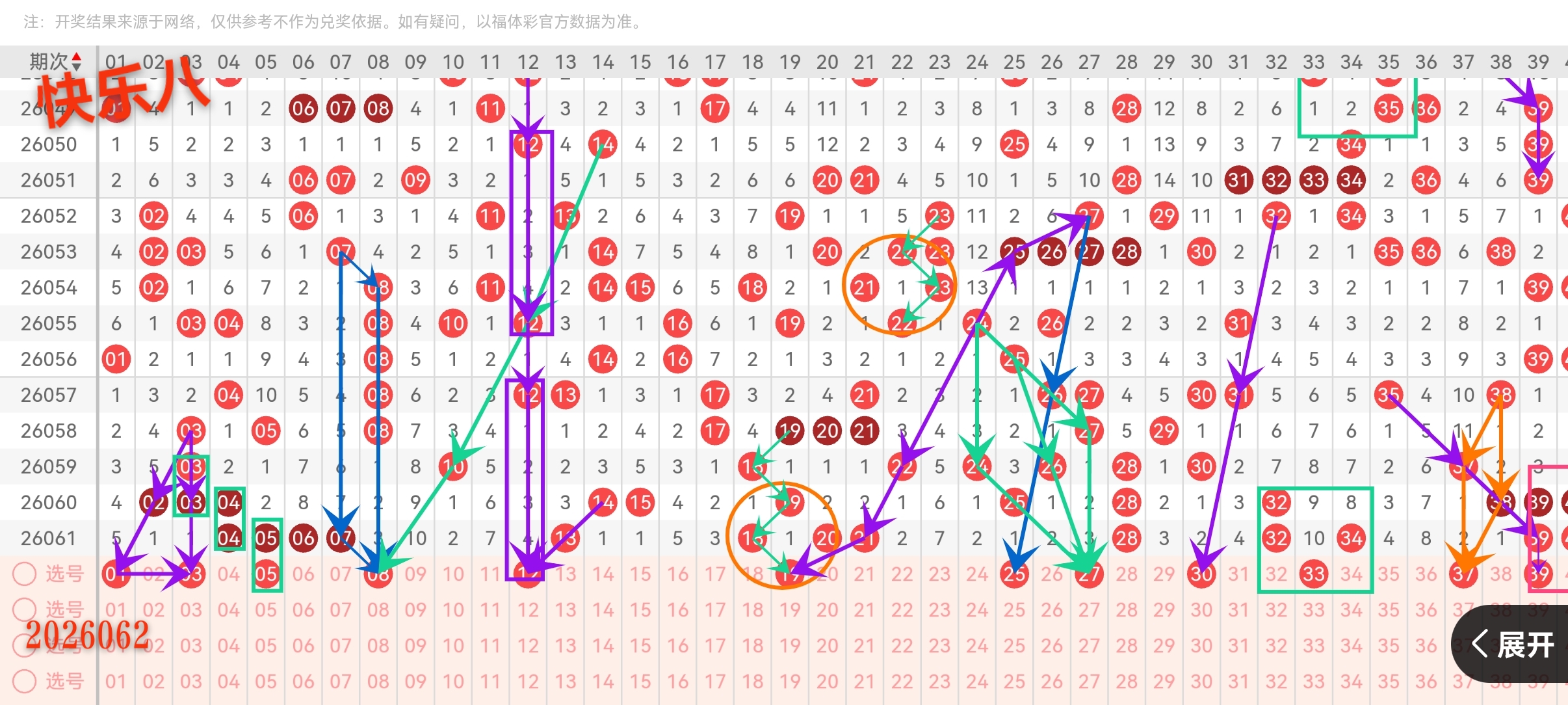 25:上期二区开了28、32、34、39、40,你看从25到27这一段,以及30、31、33这些点都是空的。25是二区靠前的一个位置,也是一个比较常出现的号。在二区号码整体分布开的情况下,像25这种有点“根基”的号码,回补的可能性不小。我把它作为填补空档的一个选择。